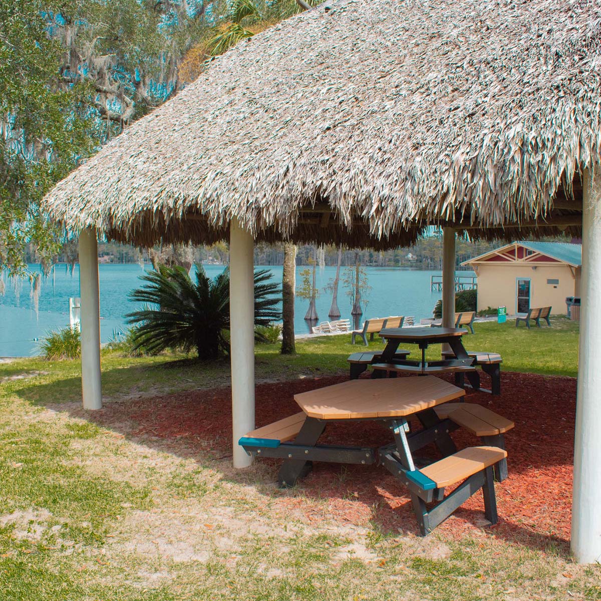 Seminoles have historically lived in open-walled, thatched roof homes called chickees. They have never lived in teepees, a portable housing structure used by many Indigenous people on the Plains. Chickee is a Seminole word that translates to “house.” Seminoles typically use cypress logs for their frames and palm thatching for roofs. Chickees are permanent and durable structures that are designed to endure the ecology of the wet South Florida interior. Today, many Seminoles build chickees in the backyards of their western-style homes and at their parks, schools, and other public places.